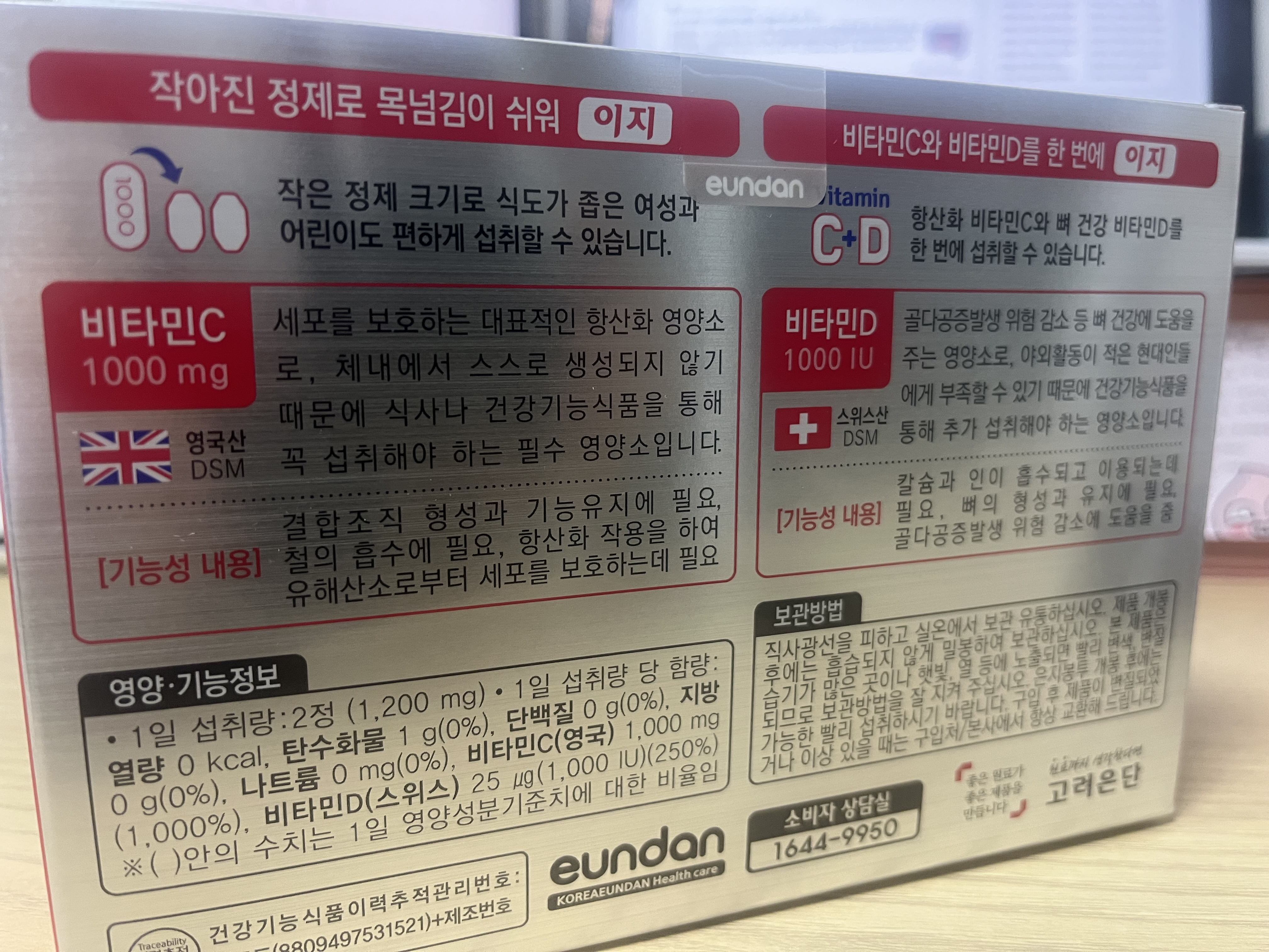 저는 고려은단 비타민C 1000 이지+비타민D를 복용했어요. 일단 목넘김이 쉽도록 만들어져 있고, 비타민D가 포함되어 있어서 선택했어요.