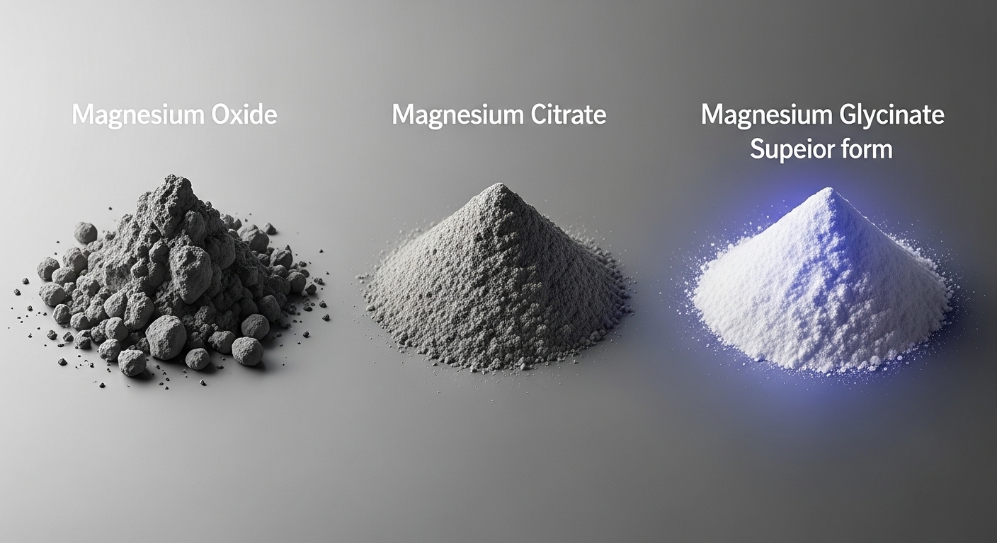 | 마그네슘 글리시네이트 | 흡수율 우수, 위장장애 적음. 수면/불안 완화에 특화. | 매우 높음 |