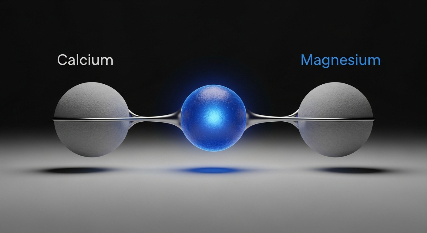 마그네슘은 칼슘과 상호작용하며 뼈 건강에 시너지를 냅니다. 전문가들은 보통 칼슘:마그네슘 비율을 2:1로 섭취할 것을 권장합니다. 칼슘을 너무 많이 먹으면 오히려 마그네슘 흡수를 방해할 수 있어요!