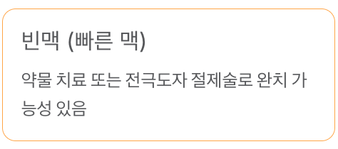 - 3단계: 삽입형 장치 치료 (수술) (느린 맥박이나 돌연사 위험이 클 때 적용)