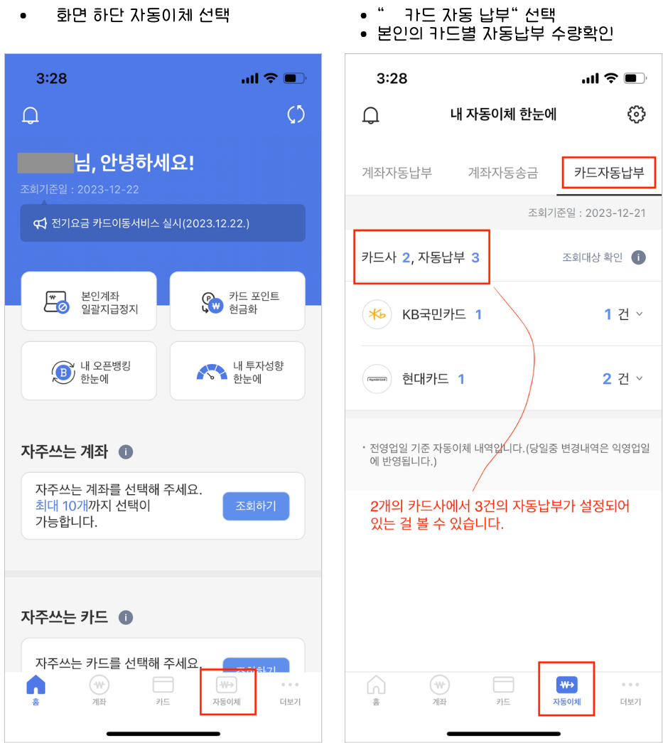 이 서비스를 이용하면 카드 자동납부 내역을 한곳에서 조회할 수 있을 뿐 아니라 변경과 해지도 한 번에 다 처리할 수 있습니다.