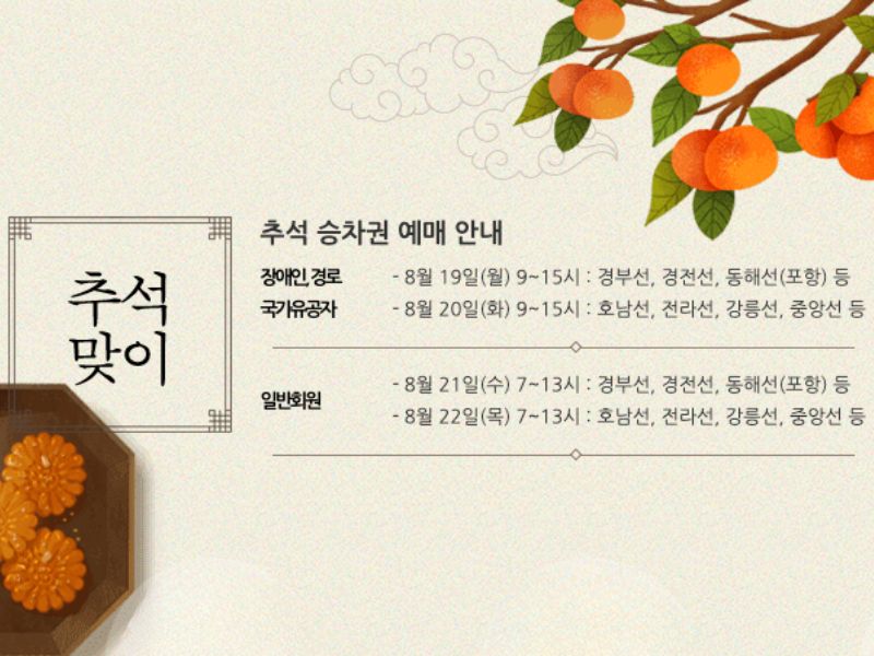 이 글에서는 KORAIL 추석 승차권 예약에 대한 자세한 내용을 알려드리겠습니다.