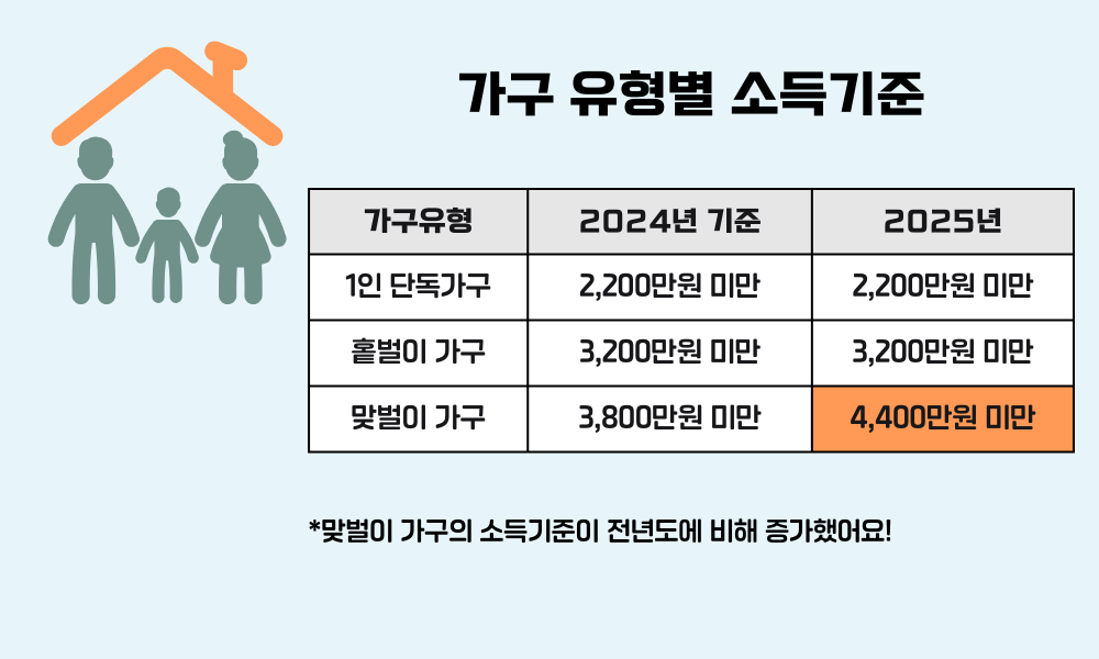특히 2025년에는 맞벌이 가구의 소득기준이 변경되었는데요, 이전까지 받지 못했더라도 혹시 올해는 해당될 수 있는지 확인해 볼 필요가 있을 것 같아요.